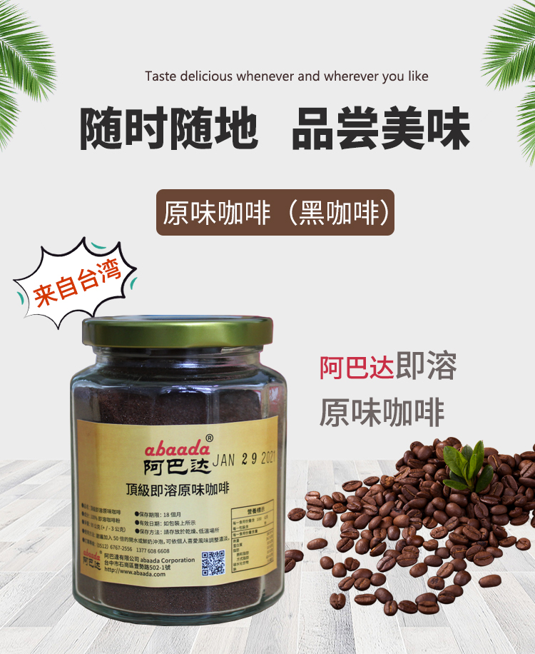 . 100%咖啡豆純 天然粹取,高濃度速溶咖啡粉。