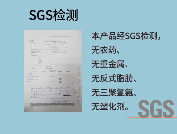 經(jīng)SGS檢測(cè),無(wú)農(nóng)藥、無(wú)重金屬、無(wú)反式脂肪、無(wú)三聚氫胺、無(wú)塑化劑
